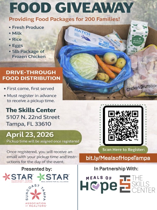 Meals of Hope Food Giveaway April 23 The Skills Center 5107 N 22nd St., Tampa, FL, United States Complete the form below to register today!